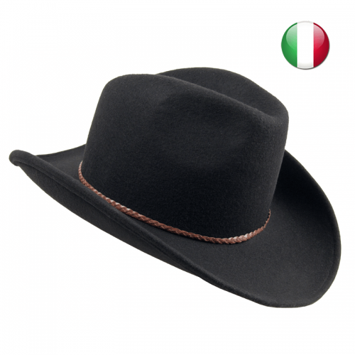 cappello cowboy in feltro con nastro intrecciato in ecopelle con passante in feltroDettaglio: 56|58|60
